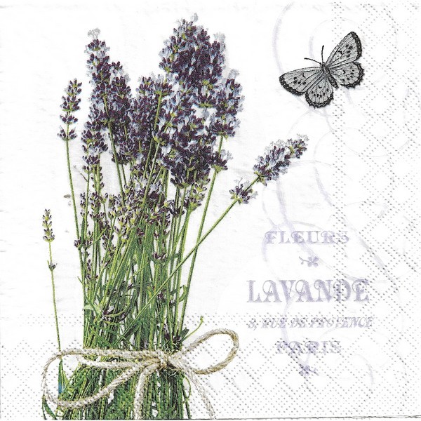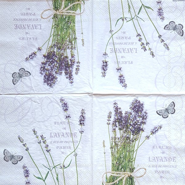 2 serviettes en papier découpage collage 33 cm PROVENCE LAVANDE PAPILLON 2