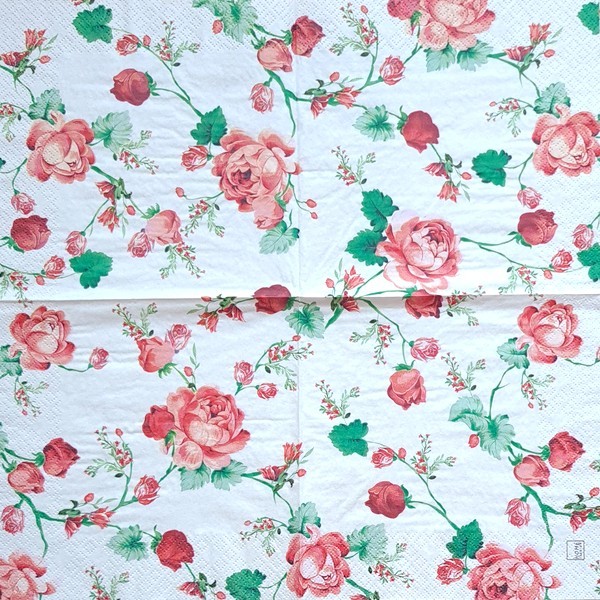 2 serviettes en papier découpage collage 33 cm FLEUR ROSE
