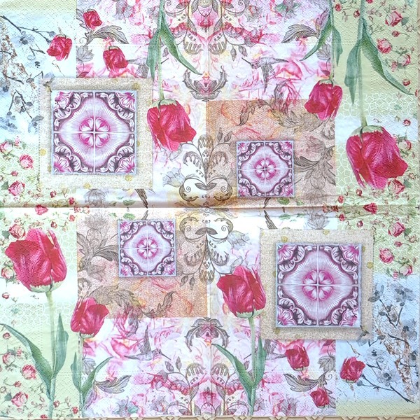 2 serviettes en papier découpage collage 33 cm FLEUR TULIPE COLIBRIS