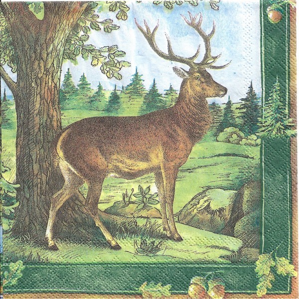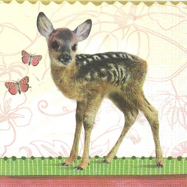 2 serviettes en papier découpage collage 33 cm FAON PAPILLON