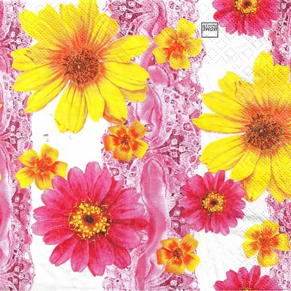 4 serviettes en papier découpage collage 33 cm FLEUR JAUNE ROSE