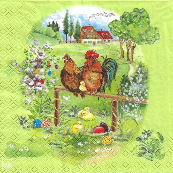2 serviettes en papier découpage collage 33 cm PAQUES COQ POUSSIN OEUF