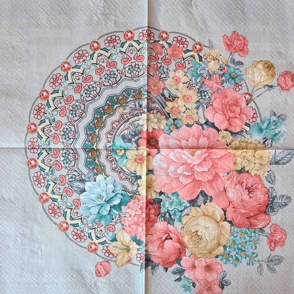 2 serviettes en papier découpage collage 33 cm FLEUR FOND TAUPE