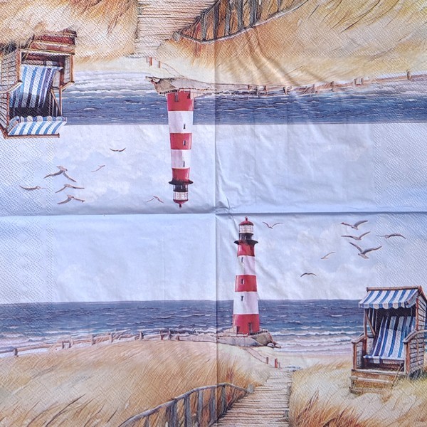 2 serviettes en papier découpage collage 33 cm PHARE TRANSAT BORD DE MER