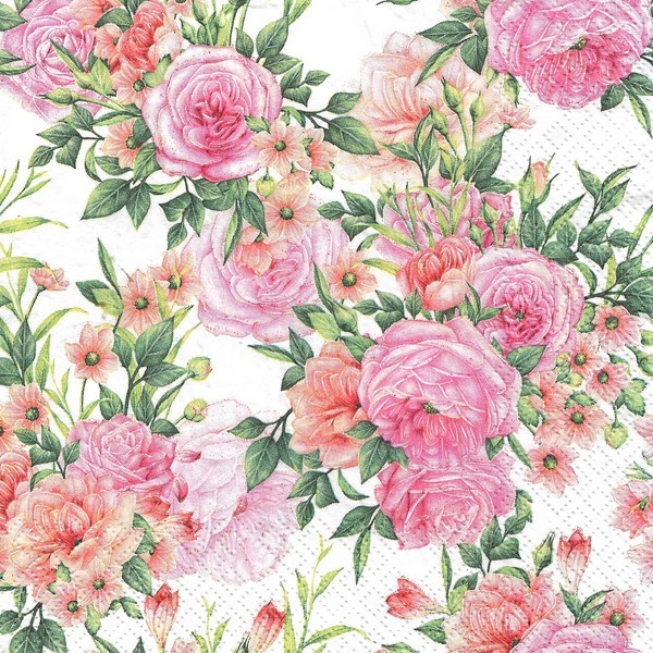 2 serviettes en papier découpage collage 33 cm FLEUR POT POURRI DE ROSE