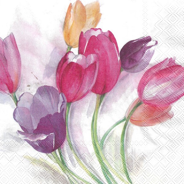2 serviettes en papier découpage collage 33 cm FLEUR TULIPE