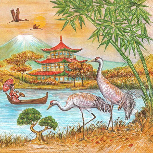 2 serviettes en papier découpage collage 33 cm TEMPLE OISEAU CHINOIS