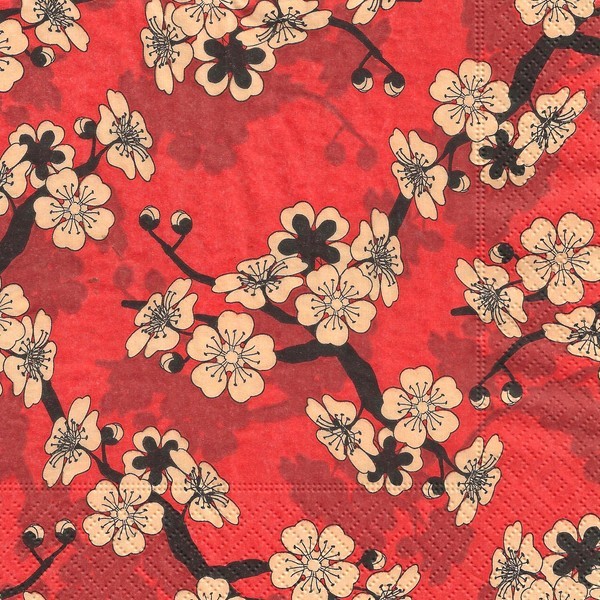 2 serviettes en papier découpage collage 33 cm FLEUR D ASIE