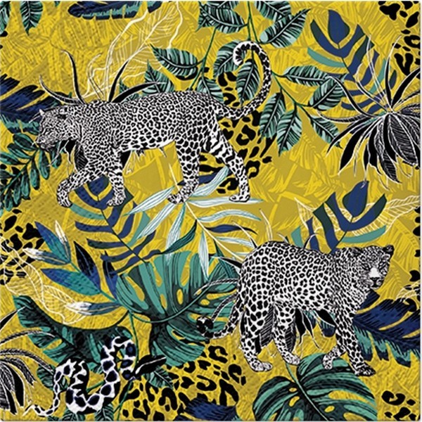 2 serviettes en papier découpage collage 33 cm SAVANE FEUILLAGE LEOPARD