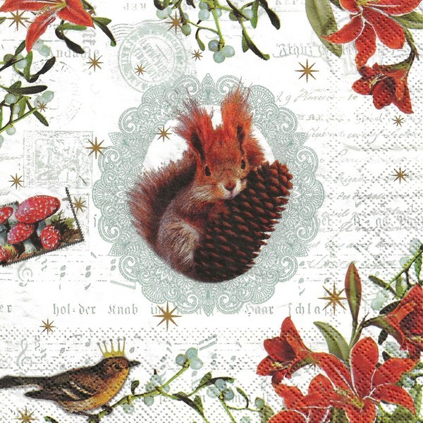 2 serviettes en papier découpage collage 33 cm ECUREUIL OISEAU FLEUR