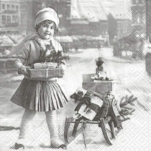 2 serviettes en papier découpage collage 33 cm VINTAGE ENFANT LUGE CADEAU