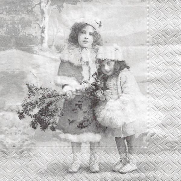 2 serviettes en papier découpage collage 33 cm VINTAGE ENFANT HIVER NEIGE