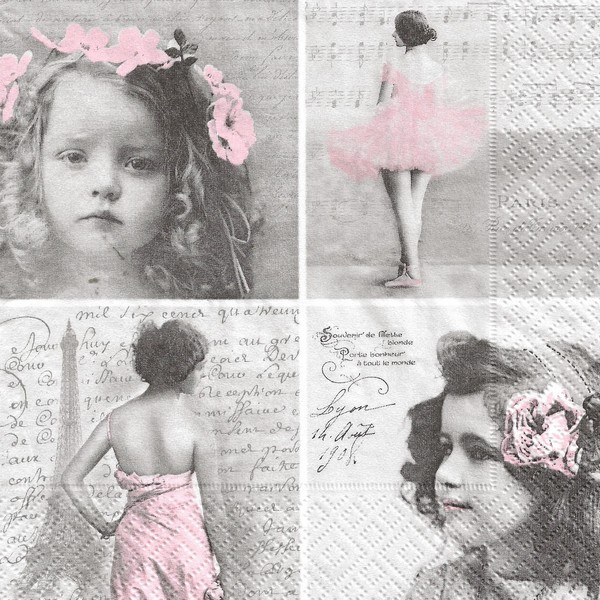 2 serviettes en papier découpage collage 33 cm VINTAGE TABLEAUX D ENFANTS B