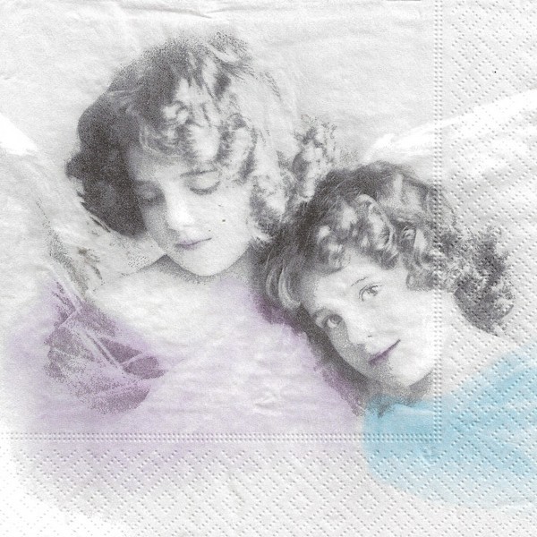 2 serviettes en papier découpage collage 33 cm VINTAGE DEUX ANGES