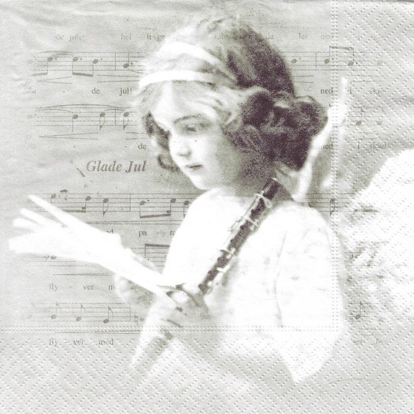 2 serviettes en papier découpage collage 33 cm VINTAGE ANGE PARTITION FLUTE