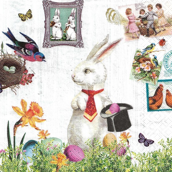 2 serviettes en papier découpage collage 33 cm MONSIEUR LAPIN A 4000