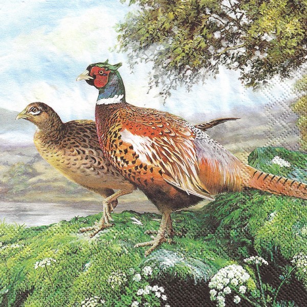 2 serviettes en papier découpage collage 33 cm FAISANS