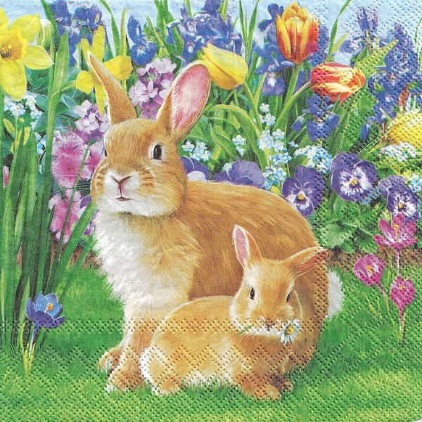 2 serviettes en papier découpage collage 33 cm LAPIN PRAIRIE
