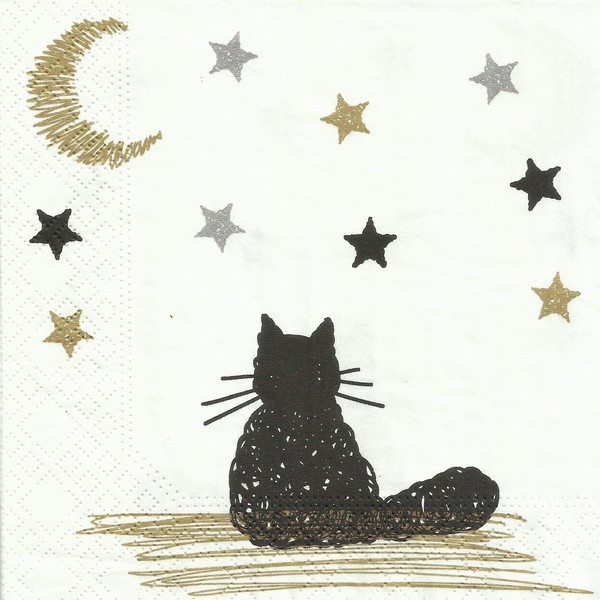 2 serviettes en papier découpage collage 33 cm CHAT ETOILE