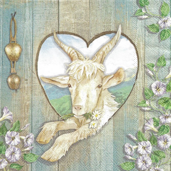 2 serviettes en papier découpage collage 33 cm BOUC MONTAGNE A 820
