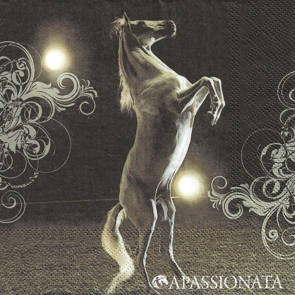 2 serviettes en papier découpage collage 33 cm CHEVAL LA NUIT