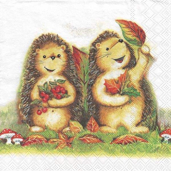 2 serviettes en papier découpage collage 33 cm HERISSON FEUILLE AUTOMNE