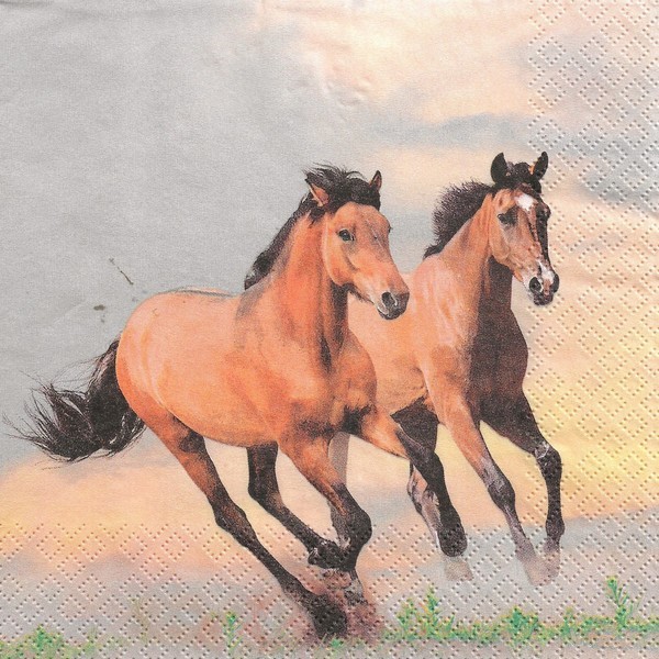 2 serviettes en papier découpage collage 33 cm CHEVAUX AU GALOP