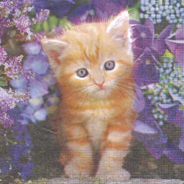 2 serviettes en papier découpage collage 33 cm CHATON FLEUR MAUVE