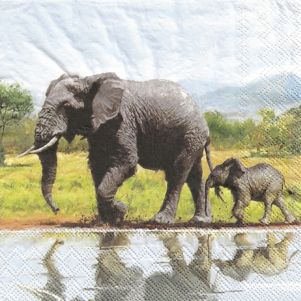 2 serviettes en papier découpage collage 33 cm ELEPHANT ET SON PETIT